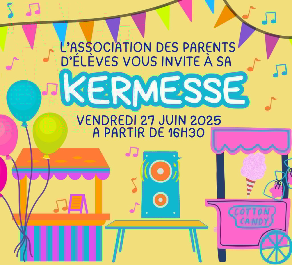 L’Association des Parents de l’École du Bourg (APEB) vous convie à sa kermesse le vendredi 27 juin 2025 à partir de 16h30, dans la cour de l’école.